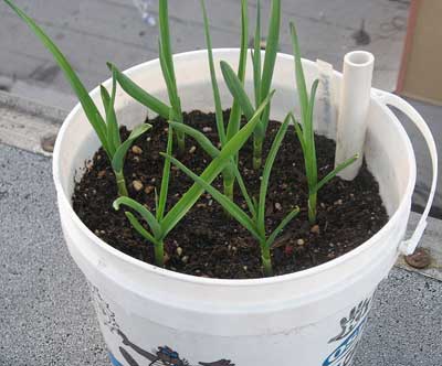 Чеснок имеет четкие потребности в температурном режиме для образования луковицы. Их достаточно сложно выполнять дома, но вы можете легко иметь постоянный запас зелени чеснока, которую можно использовать вместо зеленого лука. Большой контейнер для выращивания здесь не нужен, достаточно будет 11 см в глубину. Просто посадите отдельные дольки (зубчики) на глубину 3 см и регулярно поливайте. Зубчики должны прорасти в течение примерно одной недели.