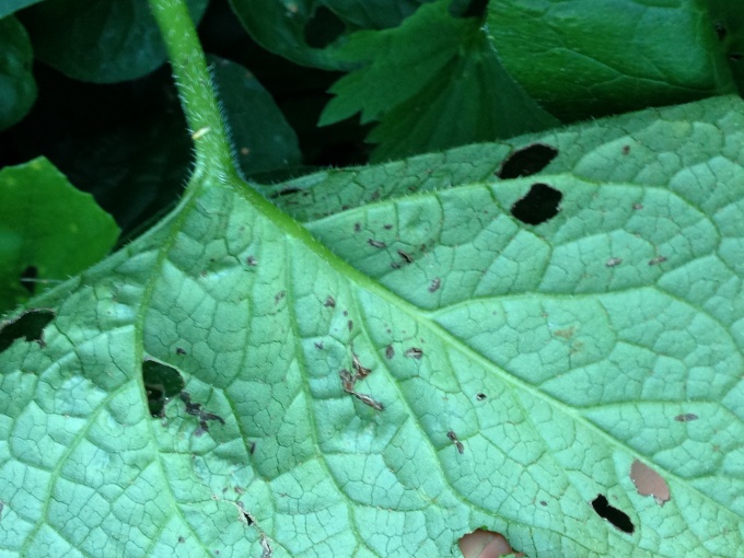 Что случилось с моей бруннерой? Помогите! Как помочь растению? Какой-то паразит наносит вред, все листья испорчены.