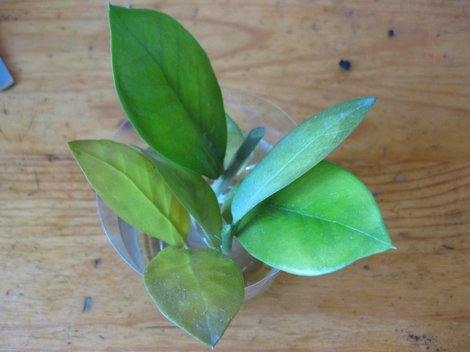 Первое время я проверяла листики часто, признаков корнеобразования не было, они выдёргивались из земли. Потом я оставила маленьких «замиков» в покое. В тот день, когда я собиралась сажать черенки из стаканчика с крохотными корешками, я проверила и моих «земляных обитателей». Если честно, надежды было мало, хоть они и стояли зелёненькие и свежие.