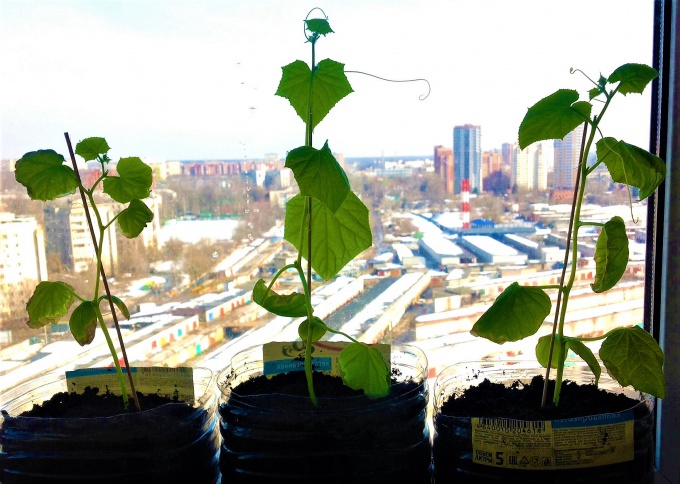 По одной я вставляла в каждую ёмкость с растением и помогала огурчикам виться по ней. Огурцы сразу «смекали», что к чему и завивали свои усики по кругу искусственного ствола, как видно по самой первой фотографии. Также я закрепляла опору сверху: шнуром привязывала к карнизу, и вся эта конструкция держалась достаточно устойчиво, хоть и не идеально ровно, хотя и геометрического совершенства вполне можно было добиться при желании.