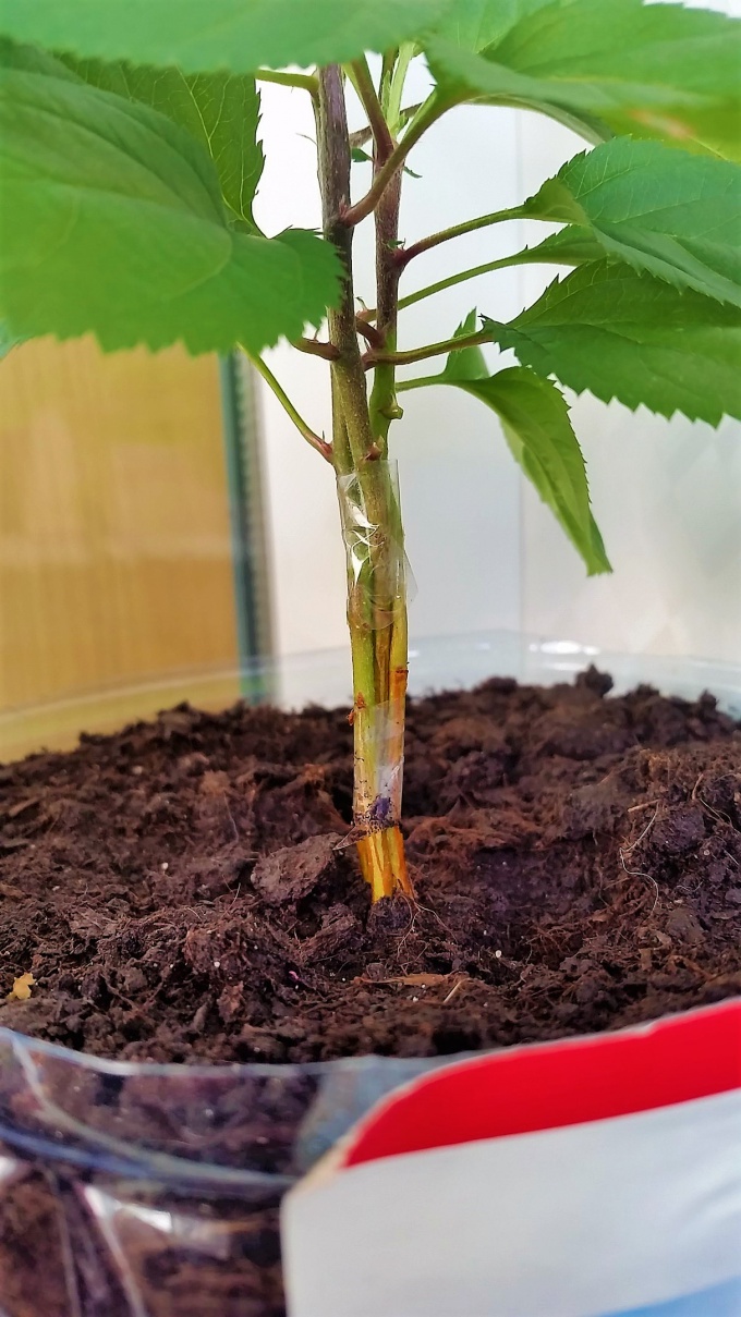 Скотч же я использую для подвязки стволов древовидных культур с целью их дальнейшего сращивания. Он не ранит молодые деревца, эластичный и, в то же время, хорошо удерживает растения в нужном положении: