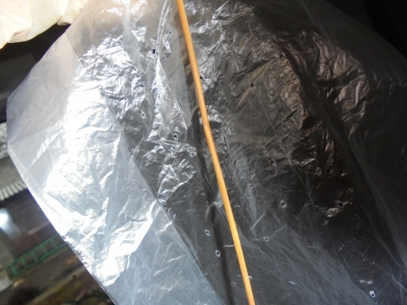 Ящики предварительно выстилаю плёнкой, чтобы вода не убегала. Для этой цели совершенно нет необходимости брать новую плёнку, я беру то, что уже ни на что не годиться.