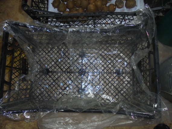 Далее ящики укутываю плёнкой, и оставляю в таком состоянии на 2 недели. За это время можно к клубням не заглядывать. А вот по прошествии этого времени необходимо открыть картошку и опять обильно полить.