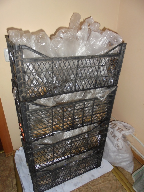 Пакеты с картофелем и грунтовой смесью я ставлю в те же ящики, где осуществляла сухое прогревание.