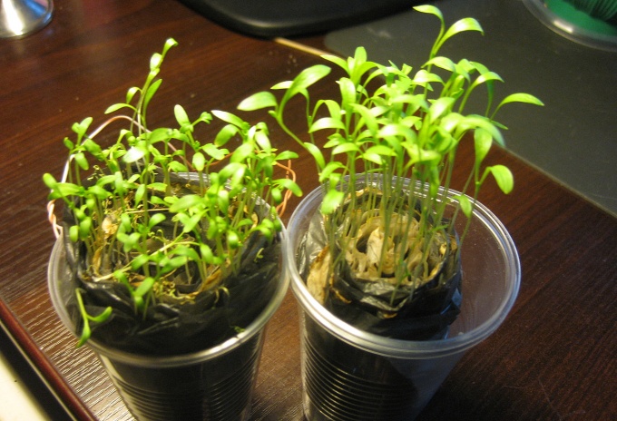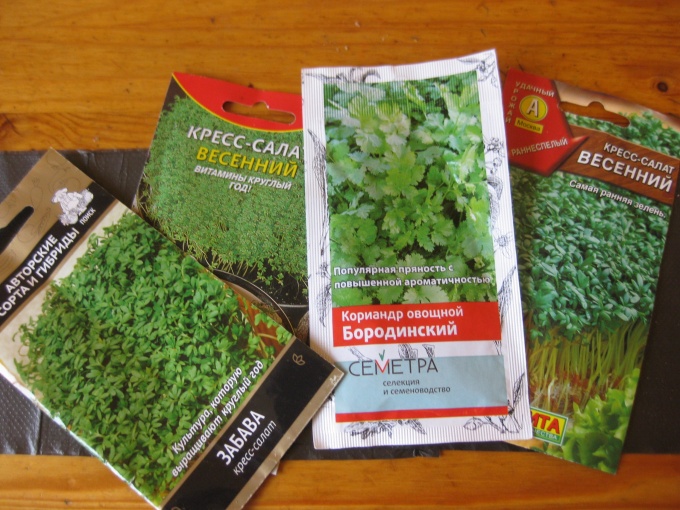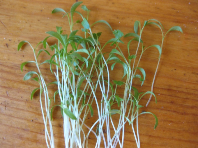 • Всходы кресс-салата появляются очень быстро, кориандр приходится ждать не меньше недели.