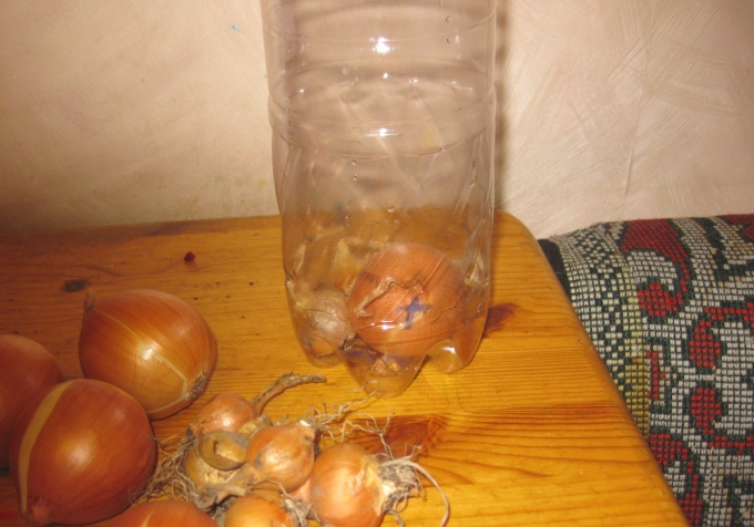 Очень многие проращивают дома лук на зелень, это простая задача. Единственная проблема, которая у меня всегда возникает – это найти, куда поставить контейнеры с землёй или с водой, т.к. луковицы занимают много места. В поисках варианта компактной посадки я наткнулась на идею проращивания лука в пластиковой бутылке в виде пирамиды.