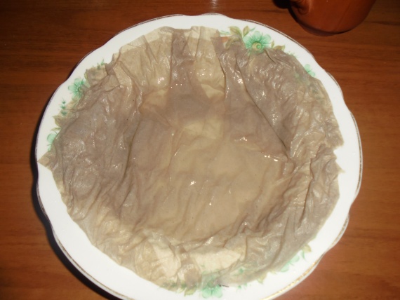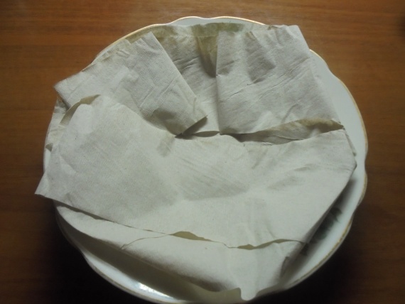 Застелила тарелку туалетной бумагой сложенной в несколько слоёв.