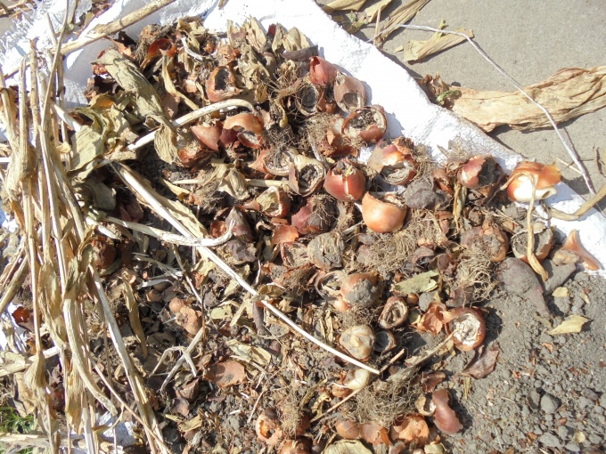 Из года в год все свои луковицы после выкопки я складывала в мешки и отправляла на просушку на чердак, который находится на сарае. На чердаке тепло и сухо. Луковицы прогреваются. Просушиваются, а потом я их спускаю вниз, перебираю, просматриваю и уже дальше храню при более низкой температуре до момента посадки.